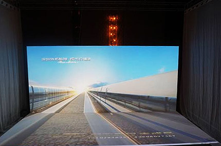 在展會現場,眾多參觀者駐足在一塊L型的屏幕前方參觀。站在“L型”的幕布前方,眼睛隨著視頻場景的變化而變動,整個人就好像快飛起來了一樣,仿佛“身臨其境”。