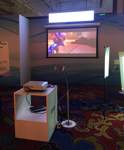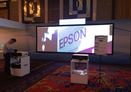 方案組成:愛(ài)普生激光工程投影機(jī)CB-L25000U一臺(tái),投影鏡頭ELPLM12一個(gè),400英寸(8.62米*5.38米)正投屏幕。