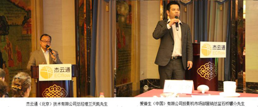 本次會(huì)議深得愛(ài)普生以及杰云通在京城各行業(yè)集成商、用戶的支持。愛(ài)普生(中國(guó))有限公司投影機(jī)市場(chǎng)部營(yíng)銷總監(jiān)石橋響介先生、投影機(jī)市場(chǎng)部經(jīng)理熊欣先生出席了本次會(huì)議。