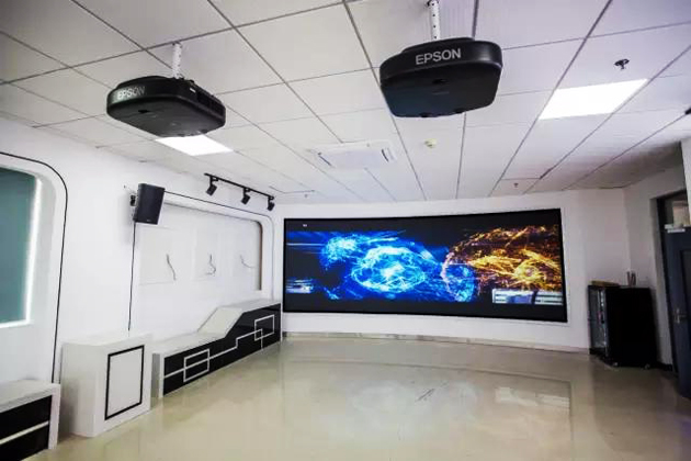 作為該重點大學的教學實驗中心,多媒體的豐富展示需求極為重要。愛普生雙通道拼接弧形融合解決方案,利用兩臺投影機內置的融合功能實現拼接融合投影,在演示大廳內6m*2m的弧形大屏上投影出90度弧度影像,以寬廣的視覺觀賞包容度,為學生和使用者帶來震撼的視覺沖擊和沉浸式體驗,非常適合教學實驗中心這種大場景的主題畫面展示。