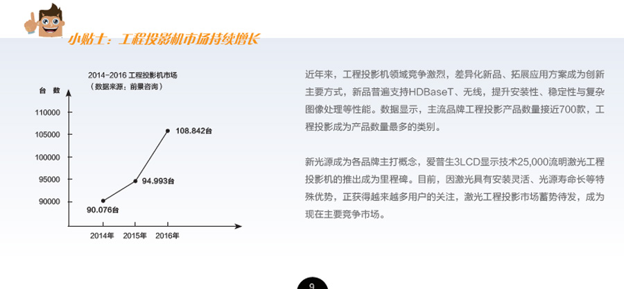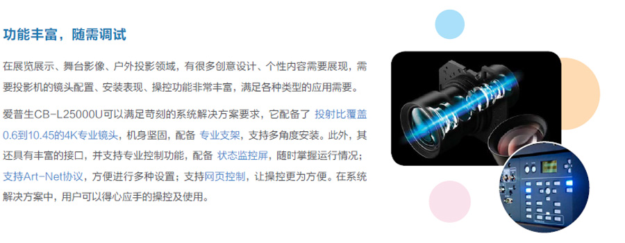 隨著行業的發展和用戶需求的提升,高端工程影像市場份額穩步提升,愛普生發揮技術實力與創新能力,為舞臺演出、戶外投影、展覽展示等高端領域帶來了高亮高畫質的解決方案。 |