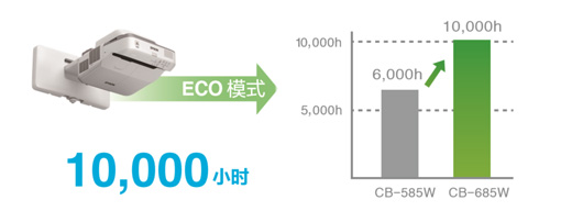 愛普生CB-685W系列教育超短焦投影機不僅是授課老師們的教學神器,也是學校IT老師們的貼心之選。該系列投影機在ECO模式下燈泡使用壽命高達10,000小時*2,亮度更持久穩定,燈泡更換頻率更低,相比其他投影機后期維護成本更低,IT老師們工作也能更輕松啦~
