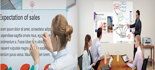 以往的互動投影機都離不開專用的書寫筆,而CB-1460Ui是基于交互技術革命和投影技術創新融合的產物,手指和互動筆都能實現觸摸操作。讓用戶在會議演示的時候,可以使用互動筆或者手指隨心所欲的打開關閉文件、翻頁、移動和擴大內容、批注保存等,而且白板可隨時從屏幕邊緣拉出,