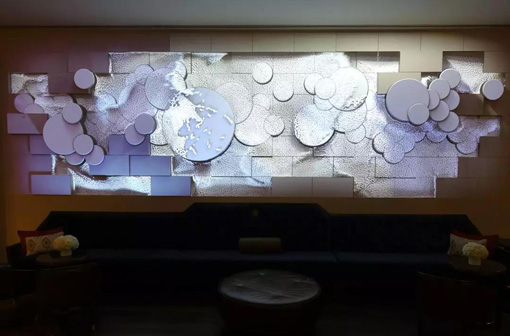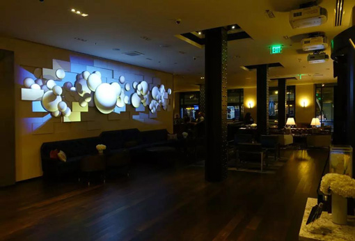 值得一提的是,通過愛普生Mapping方案,能夠營造出炫酷的投影效果,讓球體仿佛從墻壁中浮現出來,現身到真實的空間中。此外,根據日間及夜間的不同需求,JW萬豪酒店還制定了相應的可更換顯示主題內容,吸引更多旅客停留在此欣賞。