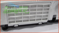 通過優化的風路設計,用于冷卻燈泡內部的氣流,是用專用導管導入的清潔空氣,先冷卻光學部件,再進入燈泡內部進行冷卻。同時另有一路氣流從電源部分進入機體內部,先冷卻電源再冷燈泡外部。先進的設計方案,大大提高了風路的冷卻效率,最大限度的減少了風扇的使用數量,從而實現低噪音。而在機體內部多種多樣的感應器中,其中一種內置感應器能夠在過濾網進入的空氣量過少或機體內部溫度過高時及時發出警報,必要時進行強制關機,以防止光學部件損傷,對投影機進行有效地保護。
