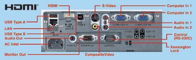 對于商務(wù)使用來說,用戶對投影機的需求不僅局限在高質(zhì)量畫面影像上,齊全的接口配置也是必須具備的。在商務(wù)辦公中,超級本和高端超薄筆記本逐漸成為商務(wù)用戶的必備工具,但這兩種工具大部分都沒有RGB輸出接口,難以與一般投影機進行數(shù)據(jù)傳輸。因此,HDMI高清數(shù)據(jù)接口顯得尤為重要。