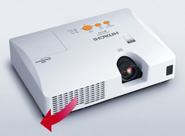 在外觀方面,日立HCP-U26W采用白色鋼琴烤漆外觀設計,看上去整潔漂亮,很適合商務環境下使用。該機個頭輕便小巧,整機重量僅2.3kg,如A4紙大小。前置的排風口設計有效避免機器廢熱對兩旁人員的干擾,十分人性化。