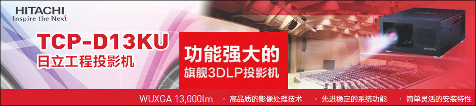 日立TCP-D13KU投影機采用雙燈系統,具有13000lm的高亮度,能夠投射巨幅畫面,同時展現更多細節。在光線較強的環境下也能投射出高品質的畫面。