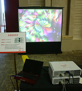 方案說明:該方案利用MAXELL 7000流明高亮工程機,利用自身獨有的Accentualizer技術,在高亮外界環境下,實現高質量高清晰度畫面效果。