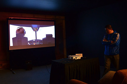 方案說明:該方案利用日立3000流明1080P投影機,為普通民眾提供全時域,全空間家庭影院解決方案。