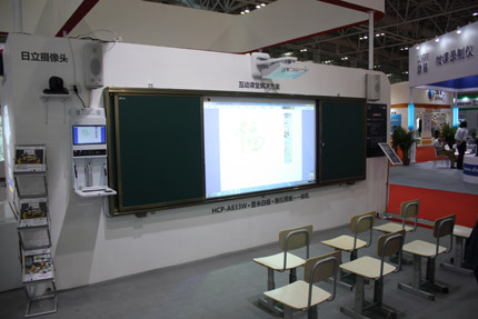 展示的多個互動、短焦電子白板解決方案是目前普教市場的主要配置,其特點解決中小型教室空間不足的問題,還可選配無線功能,并具有大功率揚聲器。