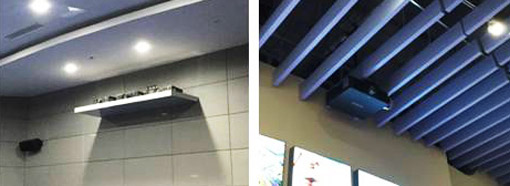 進入場館,首先看到的單臺TCP-D1070U做為形象墻規劃布局展示宣傳,在前廳明亮的燈光環境下,日立工程投影機特有的HDCR功能,通過對相關菜單模式的簡單選擇,即可實現高動態對比,減輕環境光對投影效果造成的影響,投影畫質表現完美。
