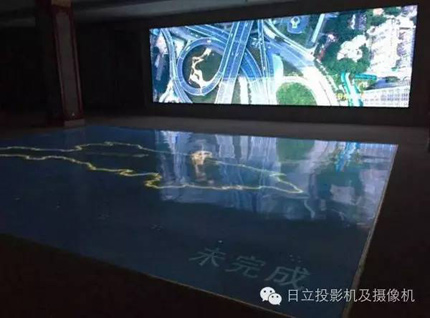 此項目應用了日立0.8:1投射比鏡頭USL-901配合TCP-D1070U,在3.84米-4.4米距離投影8.8米×6.6米影像,整個畫面達到3456×2880像素,非常精致細膩,細節呈現出色,實現了數字沙盤、圖文信息等內容的大畫面展示。