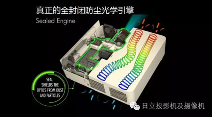 光學引擎采用防塵結構,可大幅減少空氣中的粉塵及其他粒子影響,從而保證投影機適應復雜多變的環境。熱管散熱系統可降低LED光源溫度,在ECO模式下噪音可低至21dB。這使得本投影機可完全勝任應用于藝術畫廊、博物館等低噪音水平要求的領域。