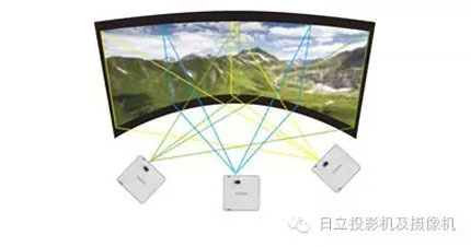 可同時使用幾何校正(變形)及邊緣融合,從而使多臺投影機在巨大弧形屏幕上投射出一個拼接圖像。