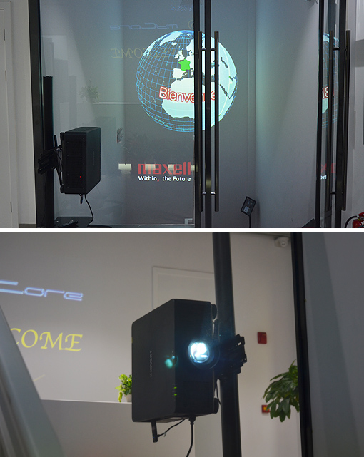 階梯投影方案,1臺激光工程投影機TCP-BL7500U豎向投影大型畫面迎接來賓。