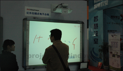 交互先鋒”為主題,再次展示了在教育界的實力。日立短焦投影機配合鴻合電子白板,組成了經典的教室解決方案模式。A系列與Q系列短焦投影為日立近期推出的面向于教育市場的產品,替代了上一代產品線,具有專業性、高品質、人性化設計。其中,Q系列短焦產品增加了智能節電功能,實現更長的使用周期,并且低功耗,受到教育界的青睞。