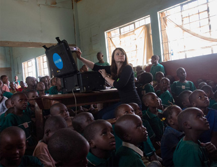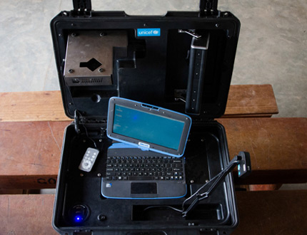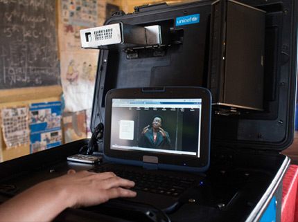 聯合國兒童基金會(UNICEF)員工演示鴻合“移動多媒體教室(Mobi-Station)” |