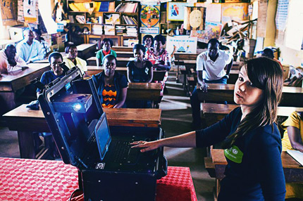 《連線》(WIRED)雜志對鴻合科技的科研創新成果——“移動多媒體教室(Mobi-Station)”進行了重點介紹,該產品通過將筆記本電腦、低功耗投影機、高拍儀、音響設備集成設計至便攜式手提箱內,利用太陽能為全部設備供電,擺脫對電力系統的依賴。而鴻合科技與聯合國兒童基金會(UNICEF)創新合作的筆記本電腦中還存儲了教育和培訓所用的圖書、課件、視頻等多媒體素材,利用投影機將內容投射在教室的黑板上、甚至一些臨時場所中,即可搭建一個可移動的多媒體教室,從而解決貧苦地區兒童教育、醫療培訓等問題。