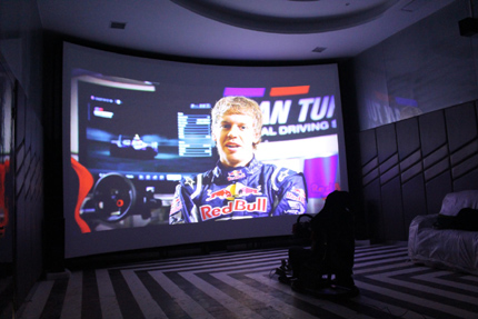 “此次方案設計中,我們重點強調的是圖像的高清分辨率和出色的音響效果。”負責此次項目的鴻合科技相關人員表示,而這也正是現場逼真效果的保障。據了解,現場采用的是NEC激光工程投影機NP-PX602UL-BK+,該投影機使用激光光源,分辨率均達到了1920×1200,同時支持4K高清。此外,NEC激光工程投影機NP-PX602UL-BK+采用全新CQP影院級圖像處理器和先進的激光熒光體投影技術,可實現色彩鮮艷的畫面,能夠把自然景色逼真的呈現出來,給“駕駛者”更加真實的賽車體驗。音響方面則采用國際知名品牌惠威的7.1聲音系統,帶來真實的引擎音效,讓人熱血滂湃。