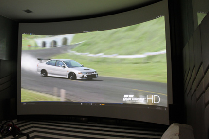 然而,在現場逼真的賽車體驗背后,完美的視聽方案設計也讓人震驚,就如看似簡單的圓弧型投影效果,其背后也是大有文章,除了采用一臺NEC激光光影投影機之外,還有弧形矯正器等設備配合支持,當然,鴻合科技對此次方案設計上的考慮還遠不止于此。