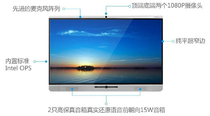 one”的產品理念,將顯示、擴音、拾音、攝像、遠程交互、書寫和觸控等,整合到一臺機器中,例如整合了先進的麥克風陣列、前端加入了1080P的高清攝像頭,同時還有2個前朝向的高保真音箱真實還原語音效果,并內置標準的Intel