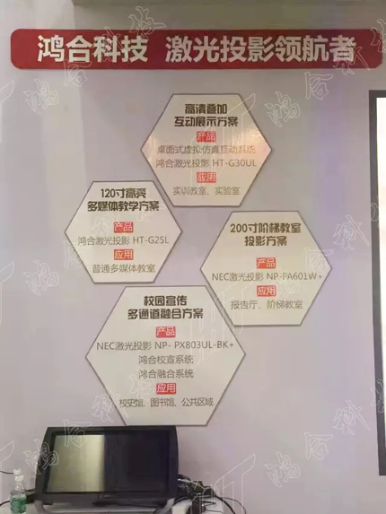 展會現(xiàn)場,鴻合大尺寸電子白板和大尺寸交互平板同臺亮相,作為教育裝備的主力軍,它們在基礎教育領域皆有不俗的表現(xiàn)。除此之外,鴻合激光投影機再展實力,高清疊加互動解決方案獨領風騷,吸引眾多眼球。