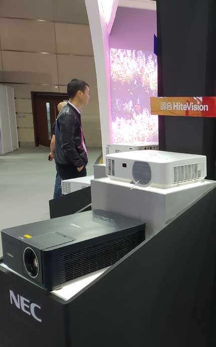 自有品牌方面,鴻合針對旗下最新激光投影陣容進行了靜態(tài)展示,產(chǎn)品覆蓋教育短焦和商務(wù)。2018年,鴻合在原有投影產(chǎn)品線的基礎(chǔ)上又推出了HT-G25L、HT-G30L、HT-G60X等系列,幾個系列覆蓋了4000-6000流明段,進一步提升了投影亮度,使鴻合激光投影能夠應(yīng)用在更廣闊的應(yīng)用領(lǐng)域。