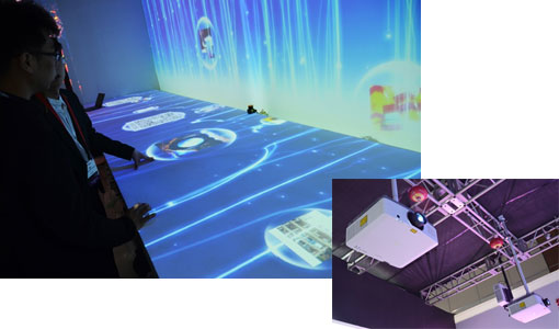 魔幻煙花帶來驚嘆效果,NP-PA651X+投影在泡沫煙花池內,觀眾將方塊道具投擲其中能激起水波效果,引發煙花噴泉,這是歡快的兒童嬉戲影像方案。