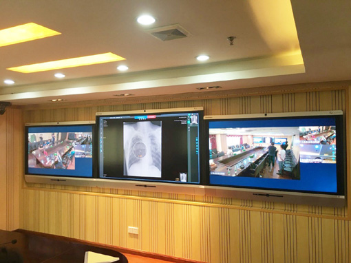 廣東省某結核病醫院,擔負著廣東省結核病防治和專業技術指導、專業人員培訓及有關科研工作,擁有各種先進醫療設備,在基礎研究、新技術應用、新策略拓展等方面不斷取得新突破和進展,與多家醫院、機構共同組建結核病研究聯合中心,并搭建“基礎研究-臨床防控-成果轉化”一體化平臺,鴻合X系列商用交互平板在這里創造了先進的遠程診療與會議系統。