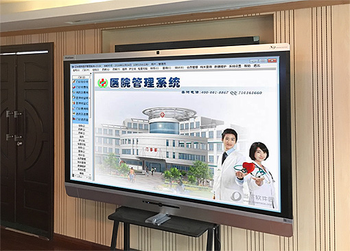 1臺86英寸鴻合X9應用于會議室,服務于遠程會議、醫院內部培訓等工作。作為X系列旗艦機型,X9具有大尺寸、高畫質、全貼合、All