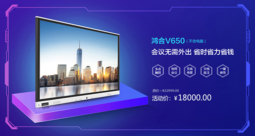 即日起至12月31日,購買鴻合商用交互平板指定型號,2019.1.31前曬單最高返3000元京東E卡。