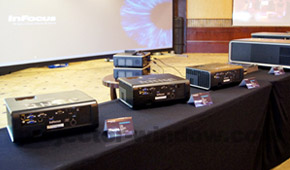 富可視還帶來了旗下最新推出的兩個系列的工程投影機IN5500系列及IN5120系列,并在會議現場利用兩臺IN5588實現1×2雙通道融合系統;還在不需要任何其它設備的情況下(疊加架、分配器、軟件等),只通過一根RS-232線纜,利用2臺IN5122投影機實現了簡易疊加投影功能。