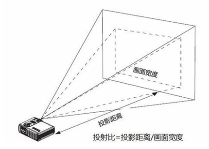 當談到投影機時,普通用戶首先會想到采用的投影技術類型、分辨率、亮度以及對比度等,然而往往會忽略投射比這個重要參數(shù),這是選用投影機的先決條件,錯誤的選擇會使得投影效果大打折扣甚至無法使用,所以專業(yè)人員會根據(jù)使用空間搭配最佳投射比產(chǎn)品進行推薦。投射比是指投影距離與投射畫面寬度的比值(D/W的比例),比值越小則說明同等投影距離內投射畫面尺寸越大,反之則越小。普通投影機的投射比通常在1.5-1.9之間,當投射比小于1時,稱為短焦(Short-throw)投影機,當投射比小于0.6時,稱為超短焦(Super