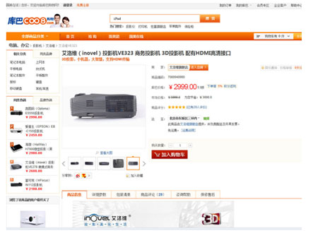 江蘇宜清光電旗下的投影機品牌艾洛維(inovel)推出的3D商娛兩用投影機VE323正在電商平臺庫巴網火熱促銷,2999元的促銷價加上庫巴網5%的積分返利十分誘人,感興趣的朋友抓緊時間前往http://www.coo8.com/product/940980.html購買吧。