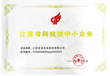 宜清光電榮獲江蘇省科技型中小企業(yè)證書 |