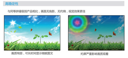 無縫液晶拼接最高可支持1920X1080分辨率的視頻源信號(hào),畫質(zhì)絢麗,可長(zhǎng)時(shí)間顯示細(xì)膩圖文。相對(duì)于同等級(jí)別拼縫的PDP拼接產(chǎn)品,無縫液晶低功耗的特點(diǎn),避免了面板溫度過高導(dǎo)致的灼屏現(xiàn)象,保障了用戶的觀看效果。