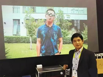 艾洛維展位艾洛維CEO劉晨親臨現場介紹艾洛維V6,是艾洛維推出的第四代無屏電視,無屏電視巔峰之作。全新極致光學設計,25cm即可享受百吋大畫面;深化定制智能操作系統,CIBN互聯網電視強勢入駐,海量影音資源任性看,打造影院級完美客廳,引領未來客廳電視新方向。 .