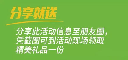分享此活動信息至朋友圈,憑截圖,可到活動現場領取精美禮品一份。