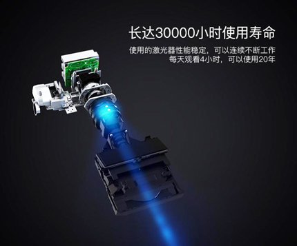 激光無屏電視是利用半導體泵浦固態激光工作物質,產生紅、綠、藍三種波長的連續激光作為彩色激光電視的光源,通過電視信號控制三基色激光掃描圖像。激光光源具有高色域、高亮度、長壽命的優勢,相比傳統高壓汞燈光源,真正實現一步到位、終身無憂。“大”電視是客廳電視唯一不變的主題,“網絡、3D、智能、4K、曲面”都是錦上添花或曇花一現,無屏電視可以打破屏幕的限制,憑借超大尺寸、健康護眼可以進入更多的家庭,不再受觀看距離和觀看時間的限制。艾洛維創始人劉晨稱:2016年我們發力激光無屏電視,我們認為這個產品的時間窗口已經到來,面對4500萬臺年銷量的千億級市場,我們不敢妄言顛覆,但是激光無屏電視無疑是客廳大尺寸的最佳解決方案,我們也是希望像海信這樣巨無霸企業持續推廣,共同讓更多的普通家庭享受超大尺寸健康視覺享受。