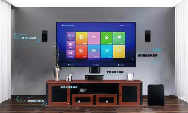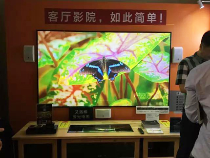 艾洛維激光電視采用最新的激光光源,搭載超短焦反射成像技術,24厘米輕松完成100吋成像,反射光源護眼更健康,目前已經成為各大音響廠商搭建客廳影院的首選。