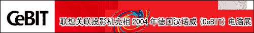 近日,聯想關聯投影機亮相2004年德國漢諾威(CeBIT)電腦大展。德國漢諾威(CeBIT)電腦展是全球最大電腦展之一,本年度展覽會強調以無線連結家庭各種裝置的數字產品,包括液晶電視、DVD刻錄器、迷你準系統、多媒體手機、多媒體轉換器(Mediaadpater)與多媒體中心(MediaCenter)電腦。聯想關聯投影機的參展是中國大陸品牌投影機產品及技術在國際IT展示舞臺的首次亮相。