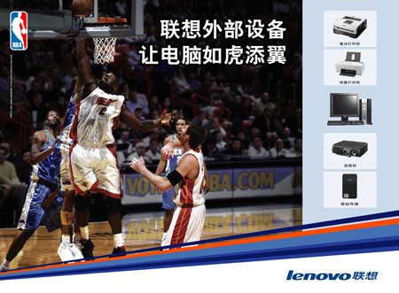 隨后,“聯想外部設備,讓PC元素如虎添翼”的NBA奧尼爾的廣告先后出現在全國各大媒體上,聯想專賣店、和全國各大電腦賣場,同時聯想還宣布對旗下包括激光、噴墨、投影機、移動存儲等一系列產品進行大手筆的市場促銷活動,聯想在簽約NBA伊始,如此發力推廣外部設備,進行如此大范圍和規模的促銷宣傳,其究竟意欲何在?