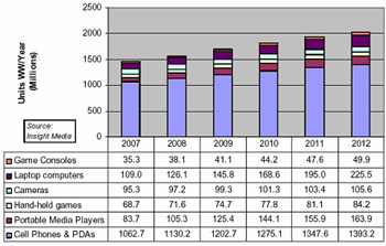 便攜投影機的出現,不僅僅是用戶的需求,更是市場大環境始然。上圖是某權威市場機構對國內IT市場的調查及預期圖。經濟的不斷發展,人們對消費需求激增,催生了一個龐大的IT數碼消費市場。數碼相機、數碼攝像機、MP3、筆記本電腦、手機等設備日漸風靡市場,已成為很多人的隨身標準配置,更掀起了新一輪的電子消費浪潮。而在這個消費浪潮中,通過上表我們可以看出,小巧便攜是IT產品發展的必然趨勢。小巧的IT產品不僅是辦公工具,還是生活娛樂的好伙伴,更是時尚的,彰顯自我的裝備。