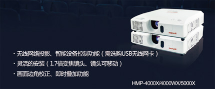 2014年,日立麥克賽爾推出高亮商務(wù)系列投影機,包括HMP-4000X、HMP-4000WX、HMP-5000X等機型,亮度分別為4000和5000流明,分辨率囊括XGA和WXGA,這一些列產(chǎn)品專為商務(wù)會議室打造,外形簡約時尚,整體輕巧美觀,適合于各類環(huán)境。在畫質(zhì)方面充分發(fā)揮3LCD技術(shù)的優(yōu)勢,提供色彩優(yōu)異、效果逼真的大畫面。
