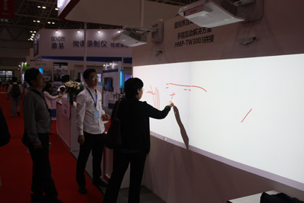 互動、短焦電子白板解決方案是目前普教市場的主要配置,其特點解決中小型教室空間不足的問題,還可選配無線功能,并具有大功率揚聲器。目前,日立短焦投影機擁有正投和反射式投射兩種類型,其中反射式短焦可在更近的距離投射出大畫面。麥克賽爾的HMP-TW2510/TW3010兩款反射式短焦投影機除了具有超短距離投射特點,還提供了供交互式軟件,并最多支持4筆互動,提升教學質量。