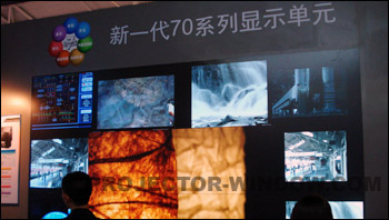 在三菱展臺(tái)上最為顯眼的就是由四塊67英寸70系列DLP背投顯示墻拼接而成的巨大顯示畫(huà)面。擁有智能、靈活、內(nèi)置處理器、自動(dòng)平衡、安裝簡(jiǎn)便、耐久以及備份7大特性的70系列DLP背投顯示墻,是今年度三菱推出的具有開(kāi)創(chuàng)性意義的最新DLP背投顯示墻產(chǎn)品。以人性化、智能化作為設(shè)計(jì)主概念,三菱70系列產(chǎn)品代表了拼接墻產(chǎn)品發(fā)展的新前景及方向,而本次展示的產(chǎn)品中另有一款67英寸前維護(hù)的產(chǎn)品,空間上的節(jié)省及便利的維護(hù)為人們選擇大型顯示設(shè)備提供了更好的選擇。