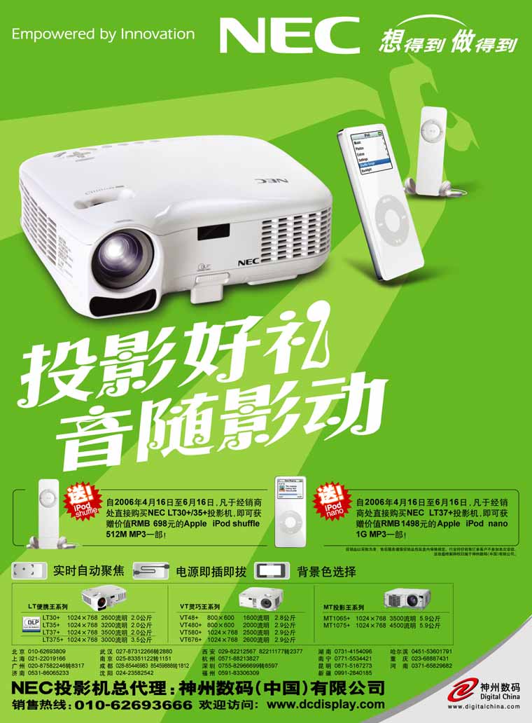 NEC投影機(jī)促銷,豪禮相送蘋果iPod