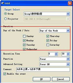 4.0軟件內(nèi)置了人性化的時(shí)間控制程序,能按星期、組別甚至精確到每天的每個(gè)時(shí)段進(jìn)行自定義演示,且允許用戶提前設(shè)定每臺(tái)的開關(guān)機(jī)時(shí)間,根據(jù)學(xué)期課表做到統(tǒng)一有效的時(shí)間管理。不但如此,PC