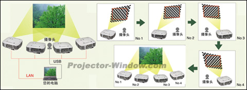 流明疊加:有些投影機擁有流明(亮度)疊加功能,如果增加投影圖像的亮度,可以使用多臺投影機同時進行投影圖像。這些投影機在機身上具有鏡頭移動調(diào)節(jié)開關,可使多臺投影機生成的圖像完全重合。而投影圖像的流明(亮度)基本上可以達到這幾臺投影儀標稱流明數(shù)的總和。